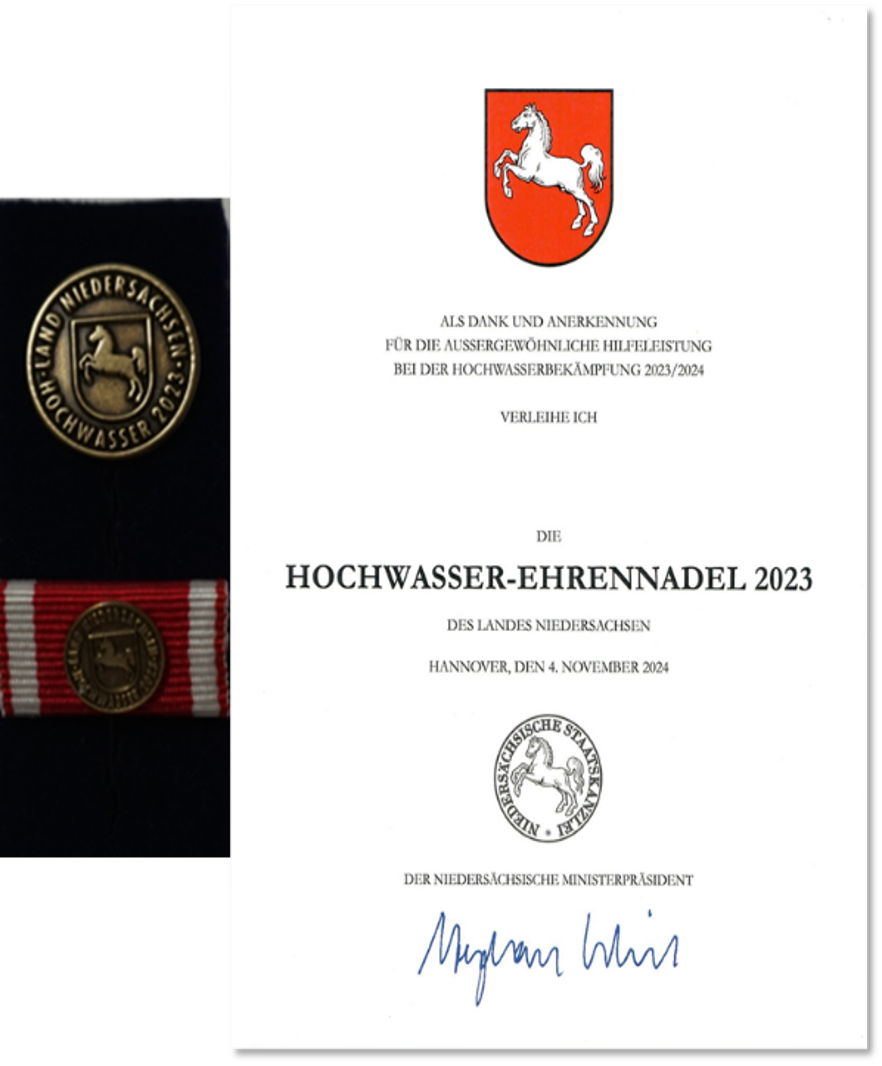 Ein herzlicher Dank geht an alle Mitarbeitenden und Mitarbeiter der EURAWASSER, die mit ihrer Einsatzbereitschaft und ihrer Professionalität dazu beigetragen haben, dass die Bürgerinnen und Bürger sowie die öffentliche Infrastruktur bestmöglich geschützt werden konnten. Es ist erfreulich, dass dieses Engagement nun durch die Verleihung der Ehrennadel für Hochwasser des Landes Niedersachsen gewürdigt wurde. Sie steht stellvertretend für all jene, die oft unbemerkt, aber stets zuverlässig bereitstehen und Verantwortung übernehmen!